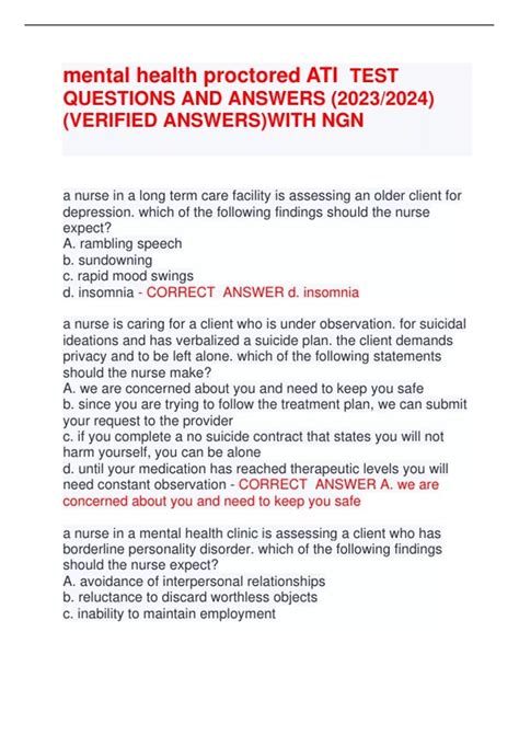 Read Proctored Ati Test Mental Health Answers Reader